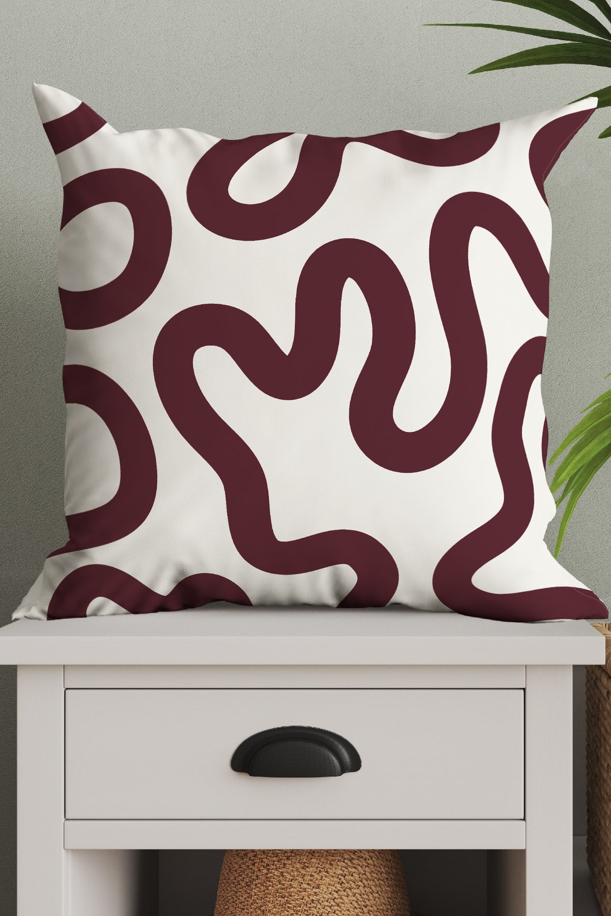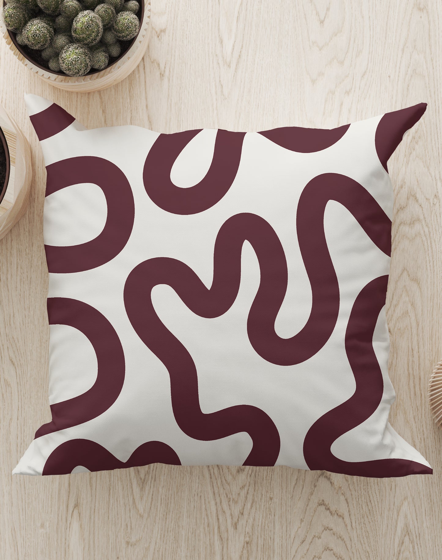 Limited edition, hand-designed swirl lines abstract cushion created in our London studio.
