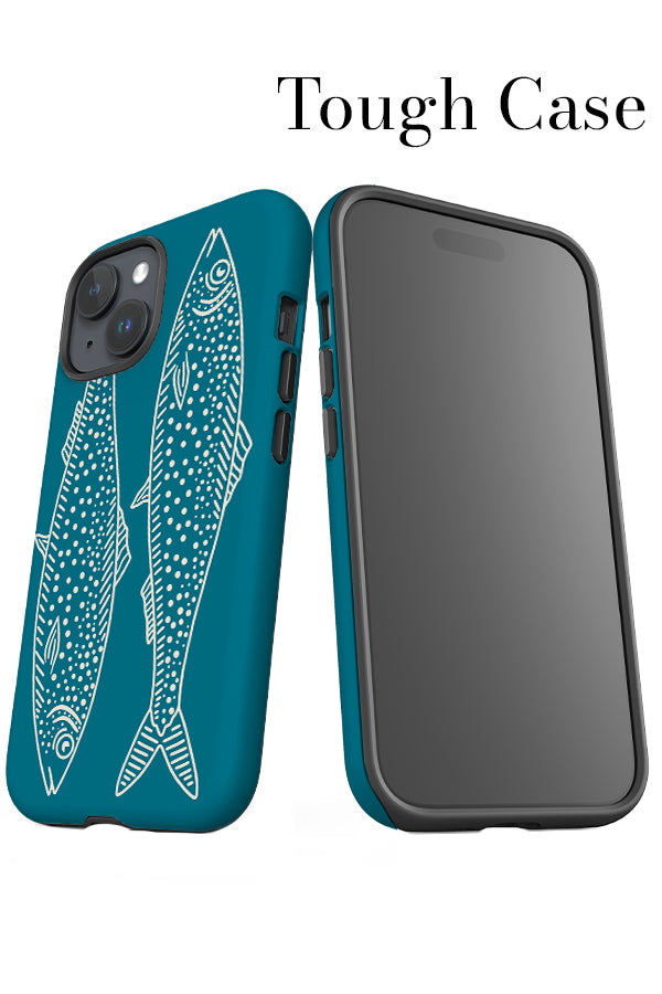Line Art Fish iPhone Phone Case (Blue & Beige)