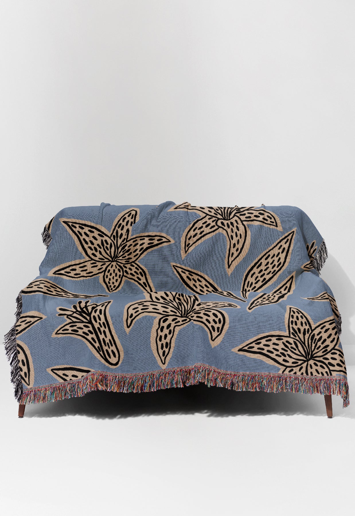 Our beautiful "the lily throw" print features a blue base colour and is adorned with beautiful lily illustrations. Like everything in the Harper & Blake store, this hand-drawn creation is made to bring a little joy to your life.