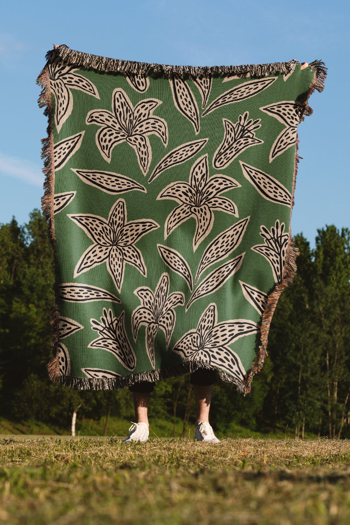 Our beautiful "the lily throw" print features a green base colour and is adorned with beautiful lily illustrations. Like everything in the Harper & Blake store, this hand-drawn creation is made to bring a little joy to your life.