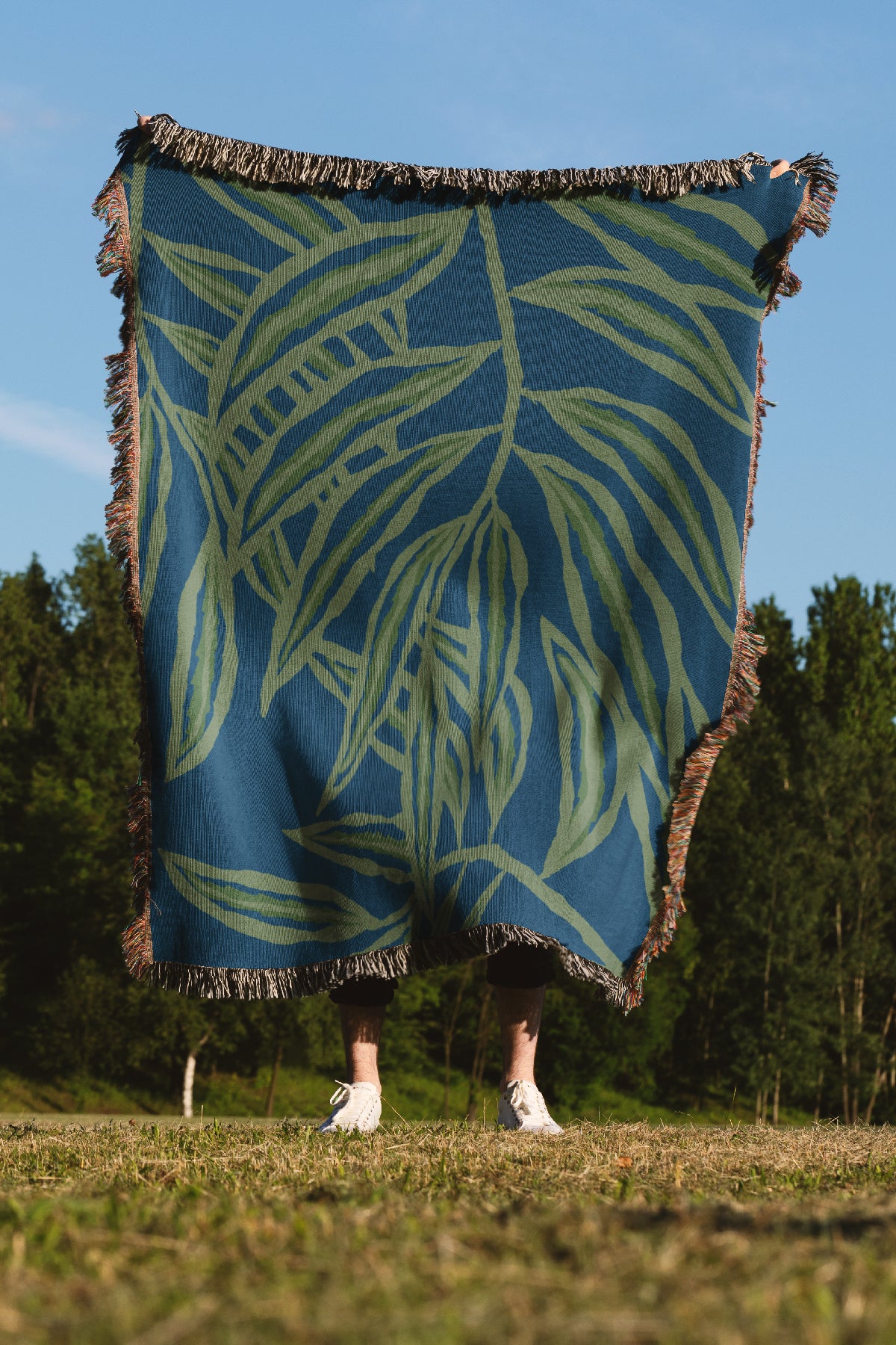 The Willow Throw Jacquard Woven Blanket (Blue & Green)