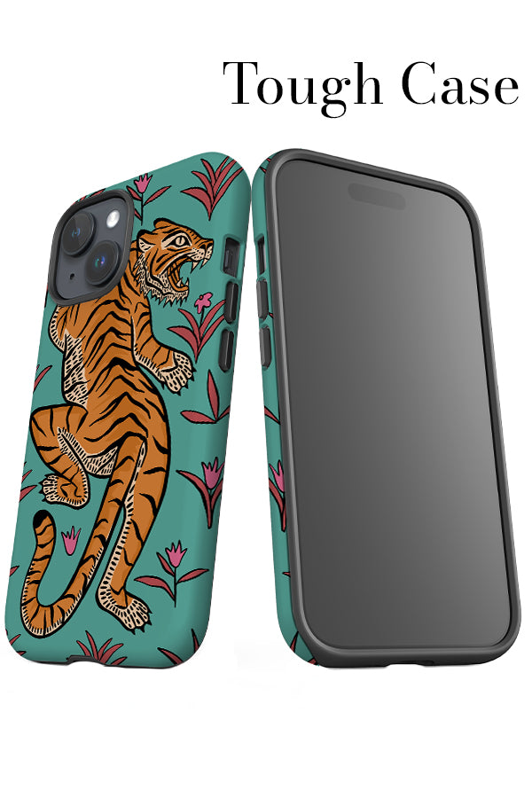 Tiger & Plants iPhone Phone Case (Turquoise)