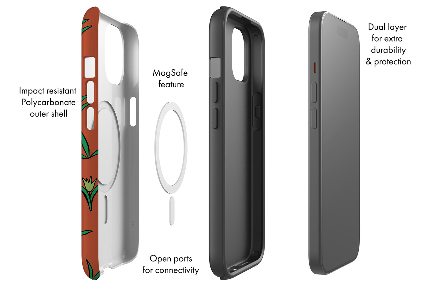 Tiger & Plants MagSafe Phone Case (Red)