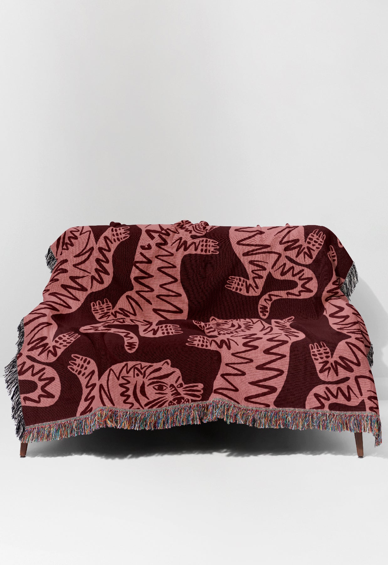 Abstract Tiger Jacquard Woven Blanket (Pink)