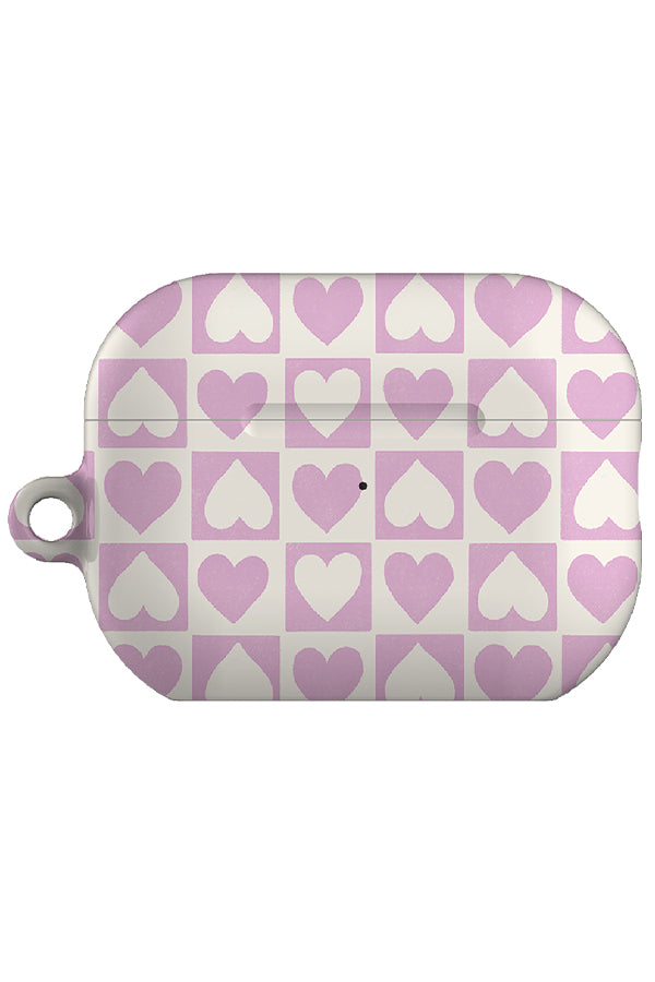 Limited edition, hand-designed heart check AirPod case created by Rebecca Elfast.