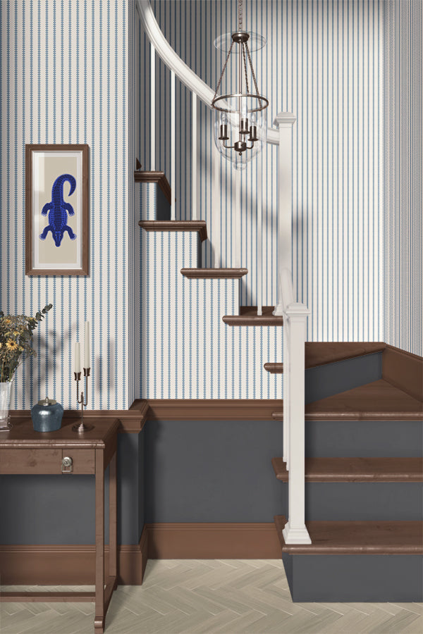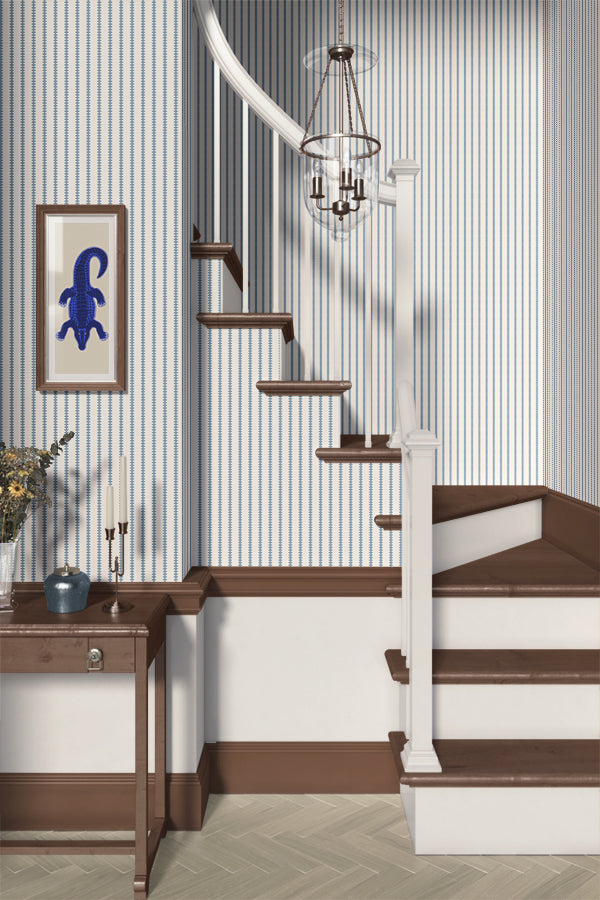 Linear Whisper Wallpaper (Ivory & Dusty Blue)