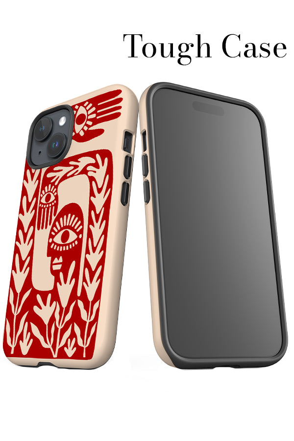 Abstract Face iPhone Phone Case (Off White & Red)
